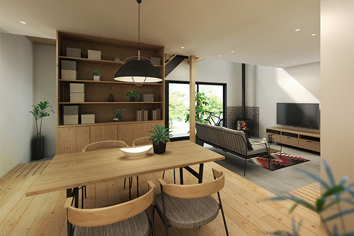 多様な用途に使える土間を室内空間へ取り入れたプランです。