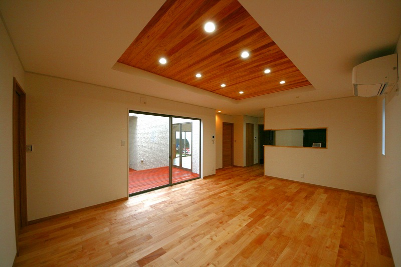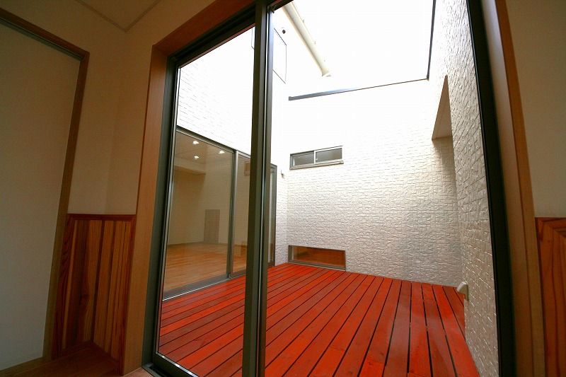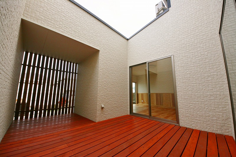 中庭とつながるアウトドアリビングの家